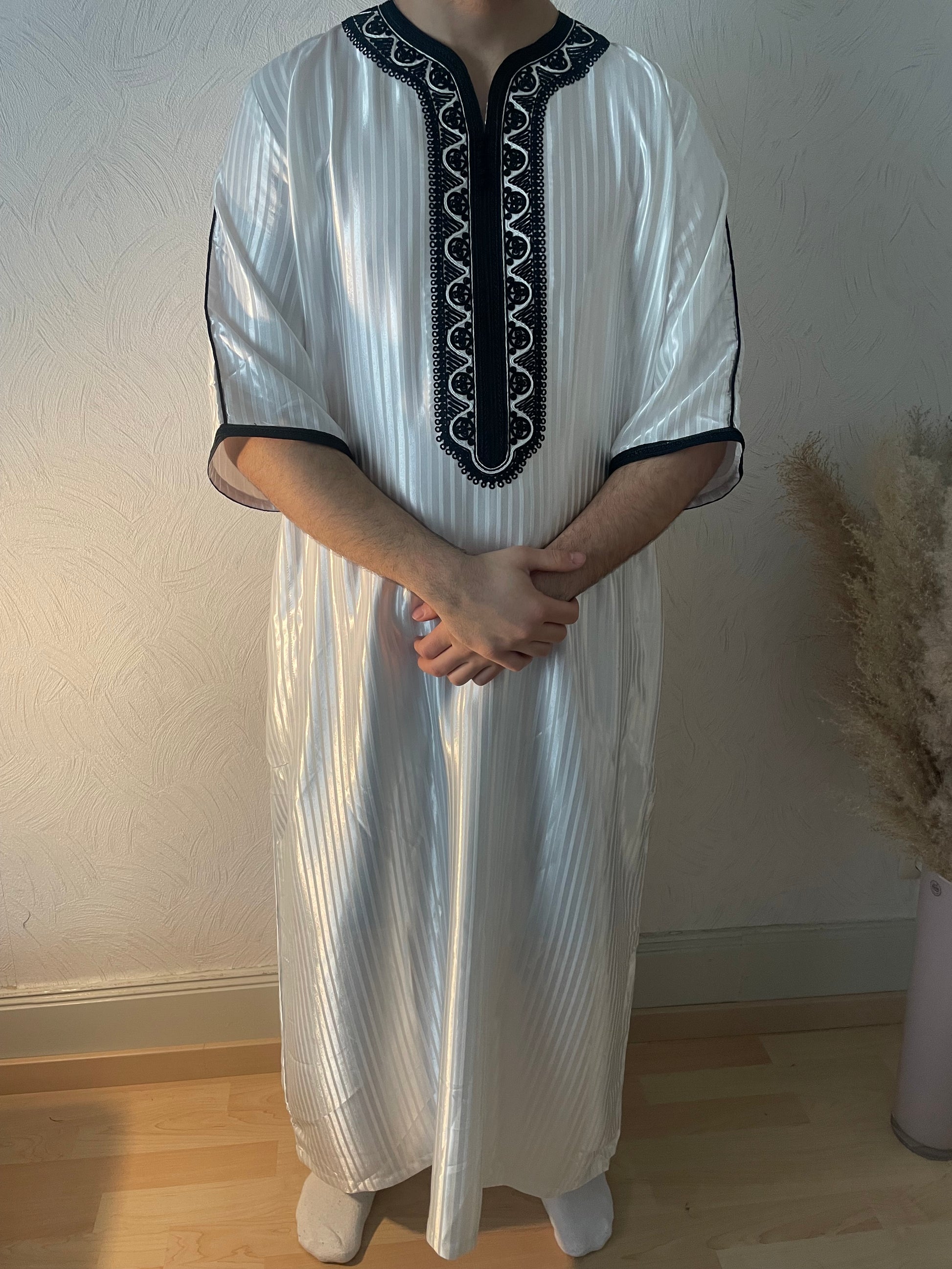 Herren Abaya (Gandoura) mit schönem Muster an der Brust. Diese Abaya besitzt auf beiden Seiten Taschen.